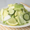 チャーシュー・水菜・さっと熱湯にくぐらせたもやしと、お酢・砂糖などの調味料を混ぜ合わせるだけ。