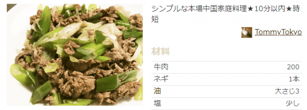 短時間で中国の家庭料理を「牛肉のねぎ炒め」